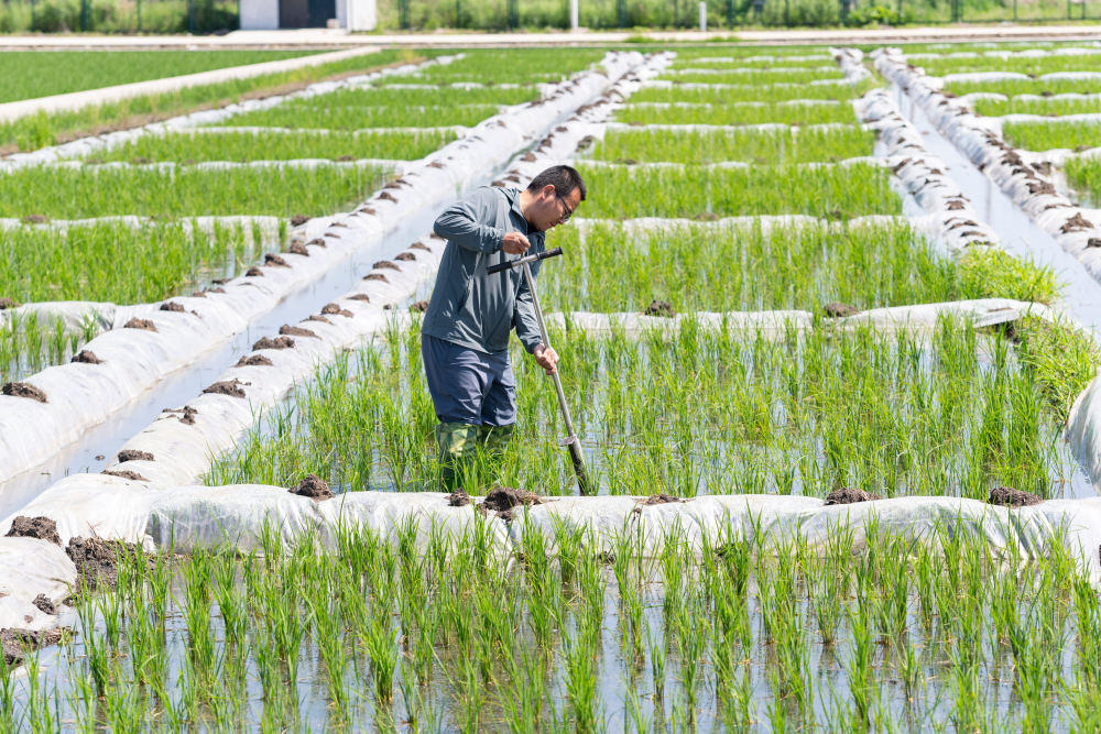 2025年6月18日,在位于黑龍江省雙鴨山市寶清縣的中國水稻研究所北方水稻研究中心的試驗(yàn)田內(nèi),科研人員取耕層土樣。新華社記者 謝劍飛 攝