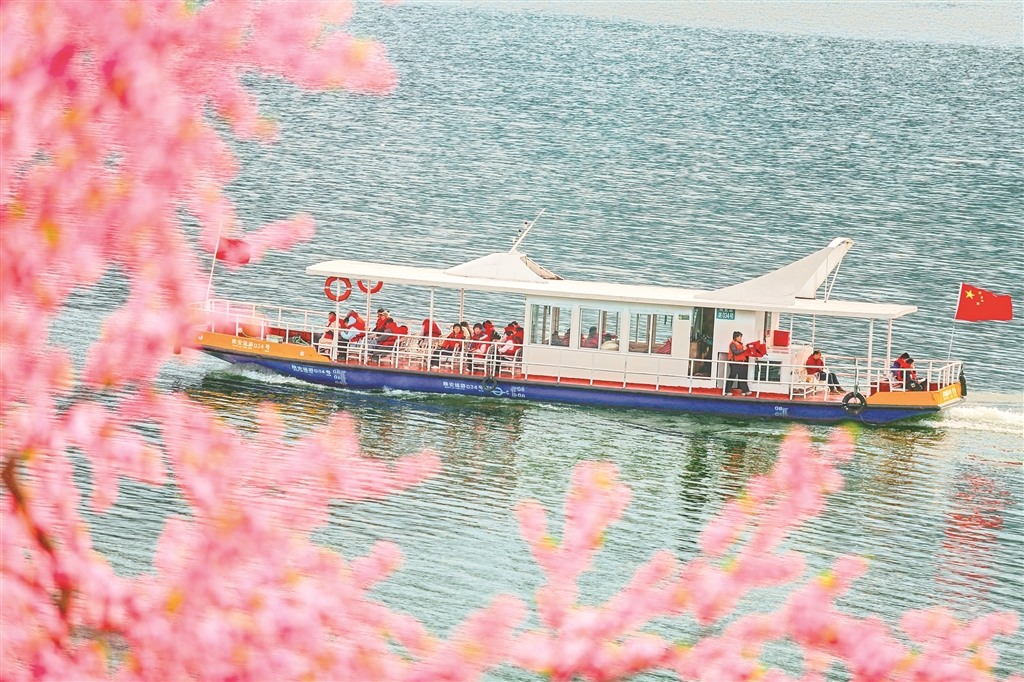 游客泛舟于瀛湖