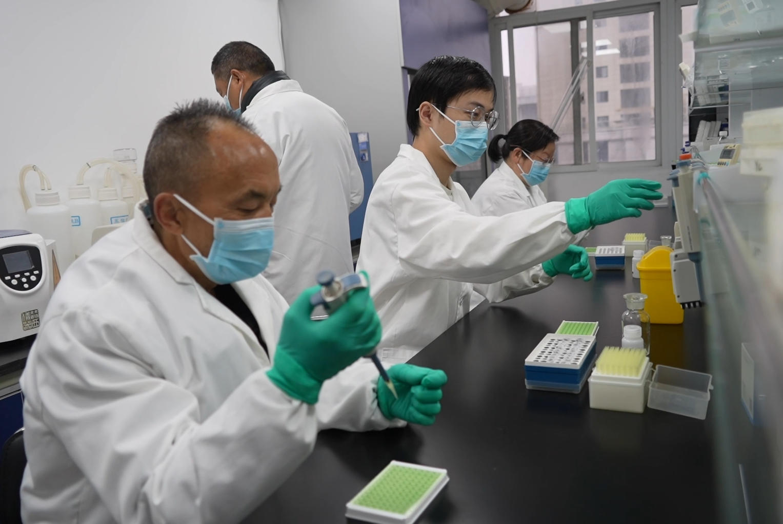△ 畜牧獸醫(yī)中心工作人員正在檢測(cè)樣本