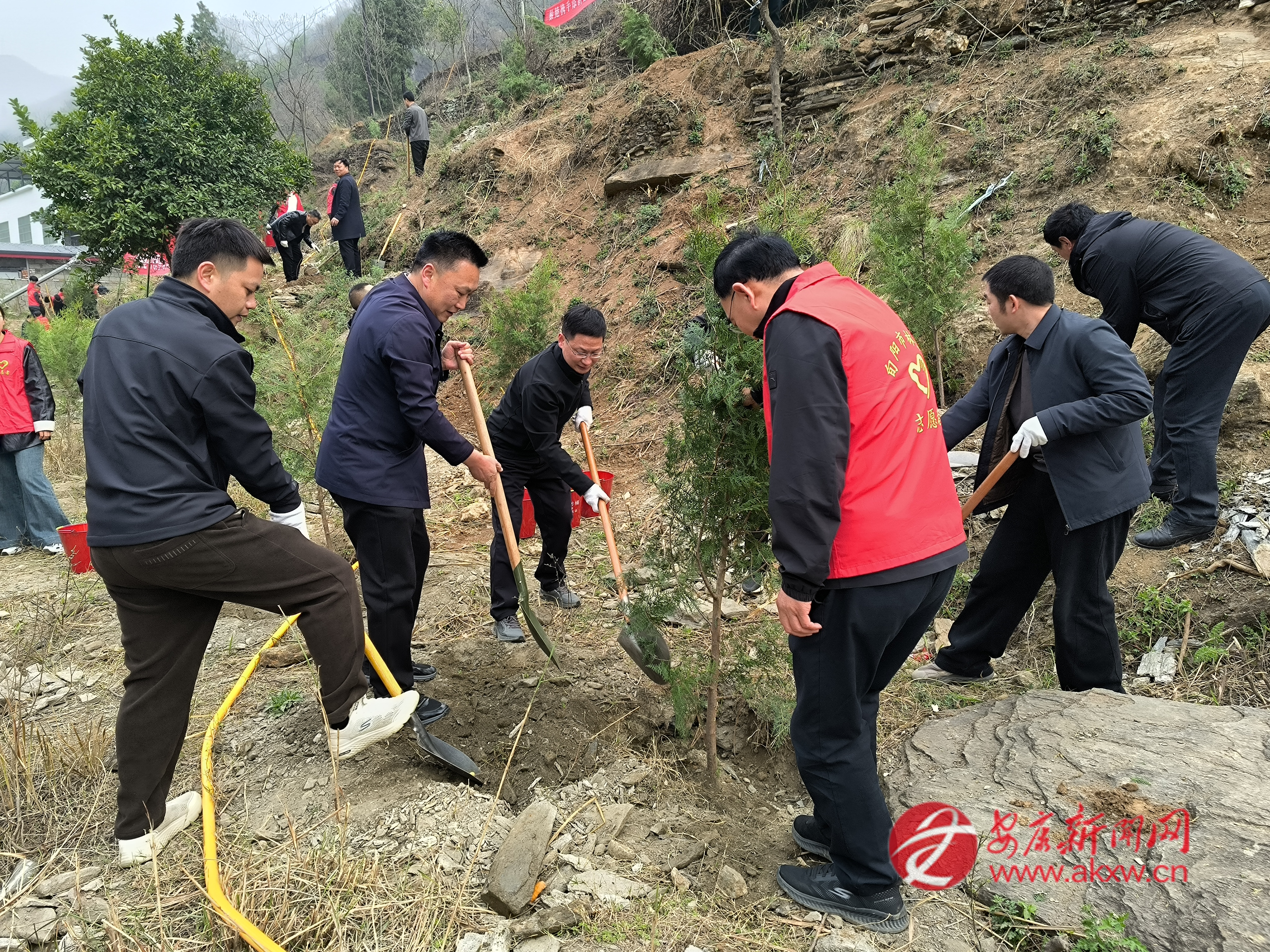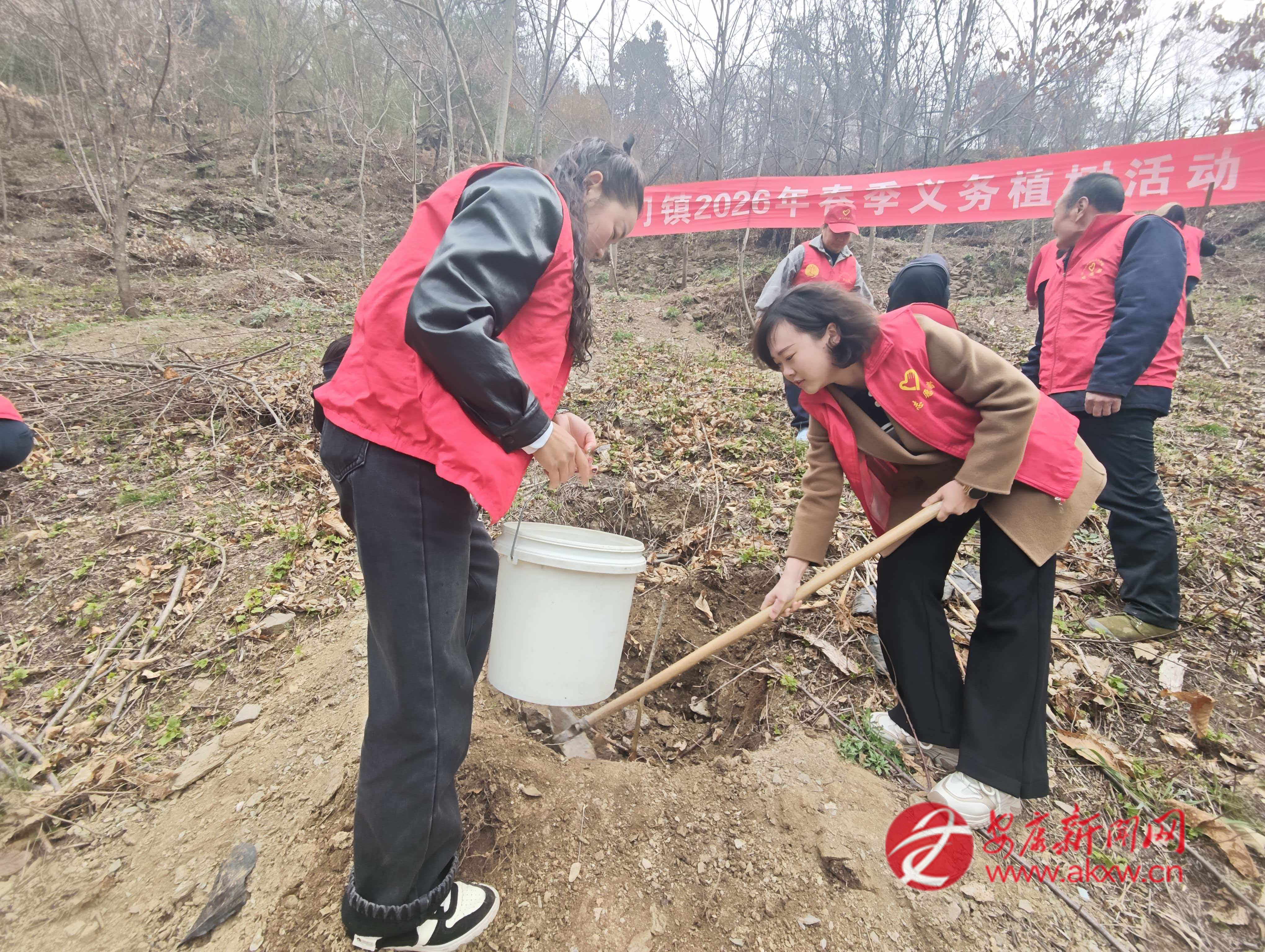 紅軍鎮(zhèn)組織機(jī)關(guān)干部、豐積社區(qū)黨員干部及群眾代表在李家院子開展義務(wù)植樹活動(dòng)