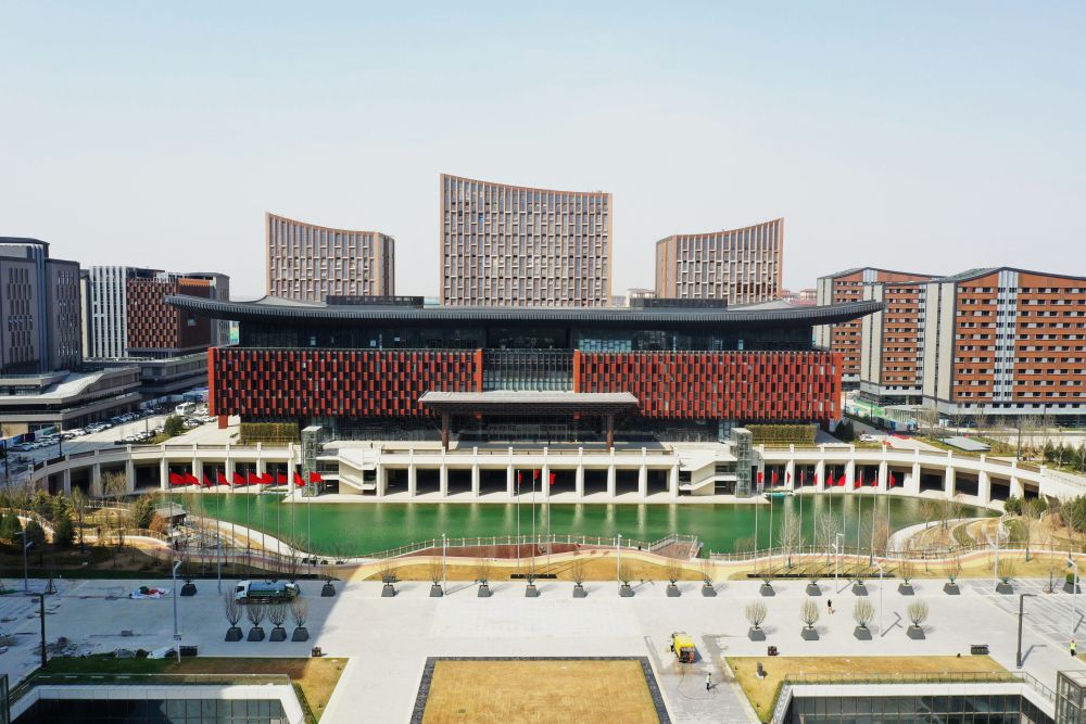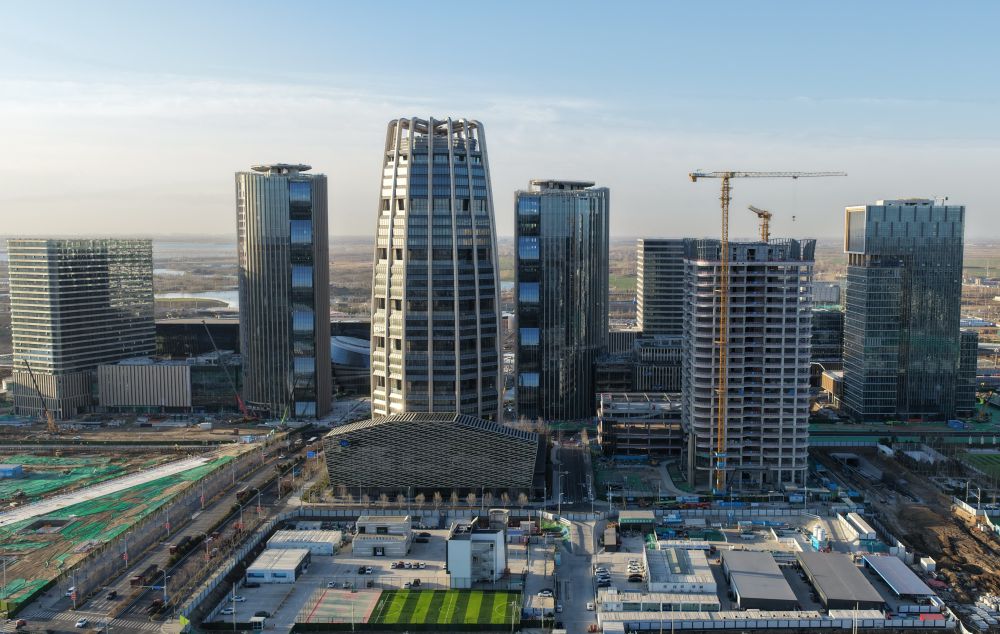 雄安商務(wù)服務(wù)中心是新區(qū)首個標志性城市建筑群,建筑風格以東方美學立體展現(xiàn)雄安特色風貌,功能包括酒店、專家公寓、商業(yè)等。2022年底,該中心投入使用。通過綠色建筑技術(shù)的集成與創(chuàng)新,這里實現(xiàn)了綠建三星標準全覆蓋,項目預計每年可節(jié)約用電1100萬度。這是2022年3月28日拍攝的雄安商務(wù)服務(wù)中心。