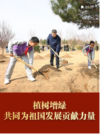 3月30日上午,習(xí)近平總書記在參加首都義務(wù)植樹活動(dòng)時(shí)強(qiáng)調(diào),良好生態(tài)人人共享,也需要合力共建。要組織動(dòng)員全社會(huì)廣泛參與植樹造林,為山川大地增添錦繡,讓中國式現(xiàn)代化的底色更加亮麗。
