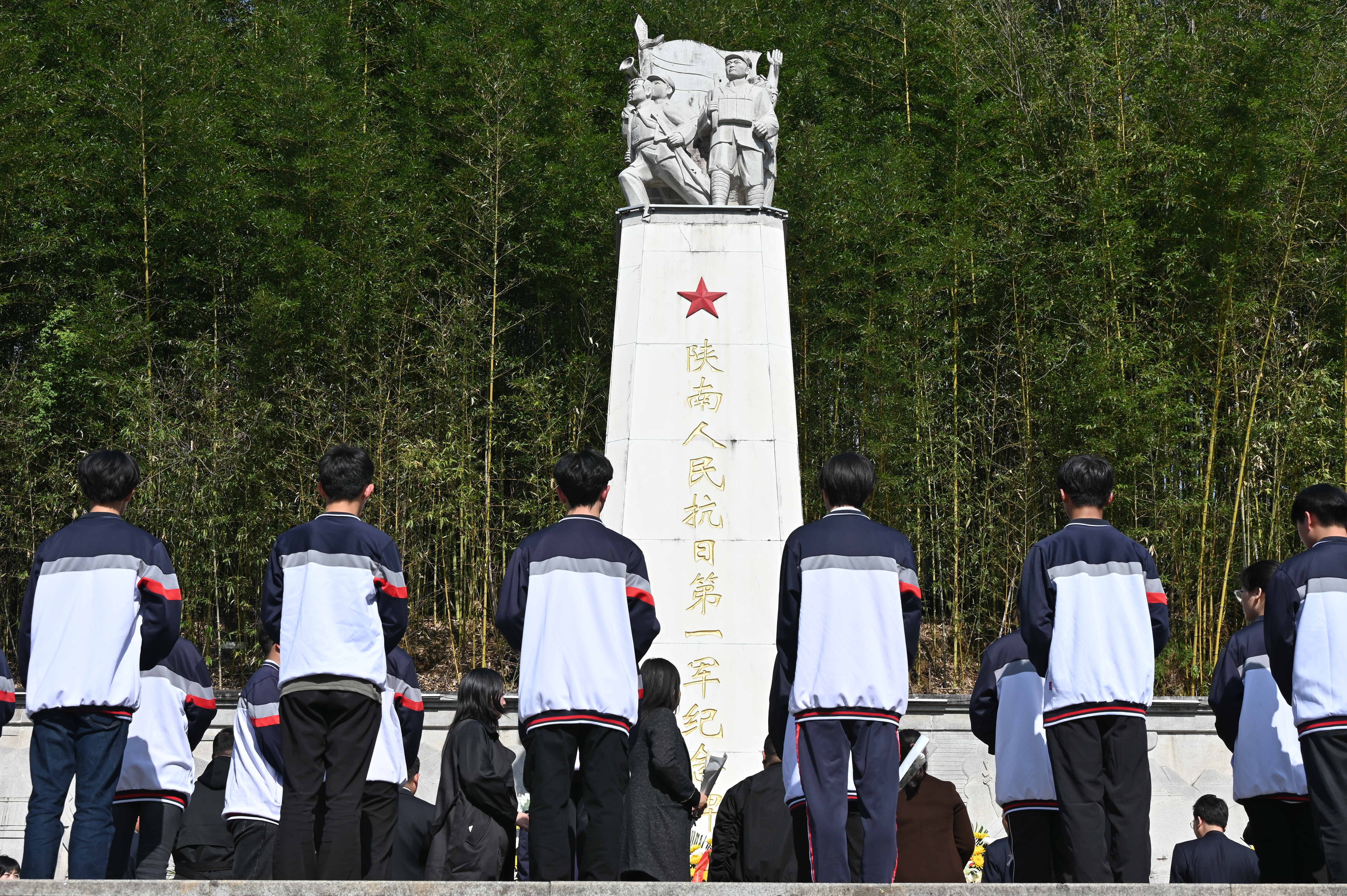 3月31日,安康職業(yè)技術(shù)學院組織師生赴漢陰縣開展“漢陰尋跡、致敬英烈”活動,參觀了漢陰縣沈啟賢將軍故居、楊棄將軍紀念館。因為陜南人民抗日第一紀念廣場,師生代表敬獻花籃。 張智明 攝