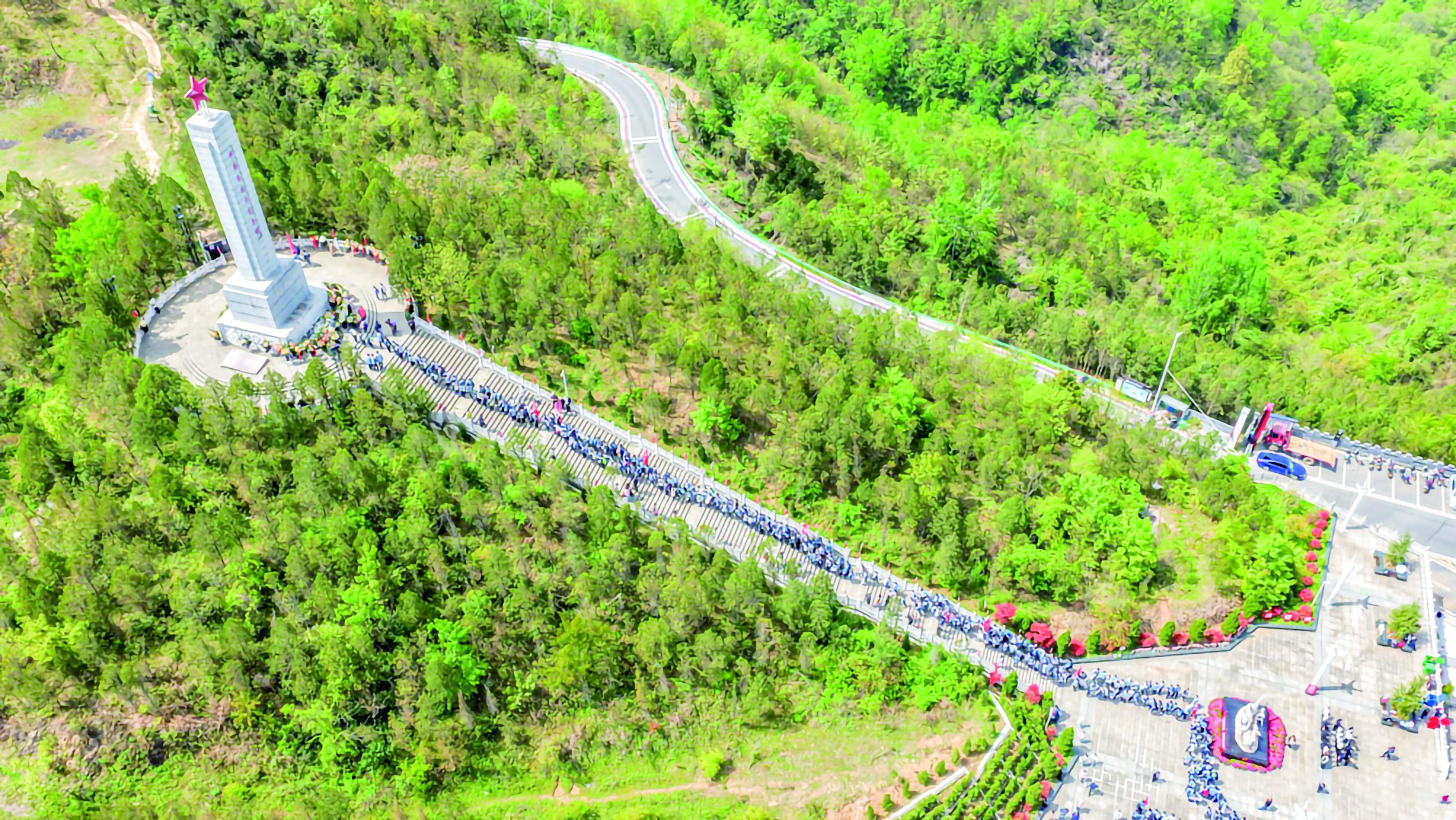 ▼ 4月3日,江北高級中學(xué)、安康中學(xué)初中部等5所學(xué)校的3000余名師生徒步赴牛蹄嶺開展清明祭奠烈士活動。 皮勇維 攝
