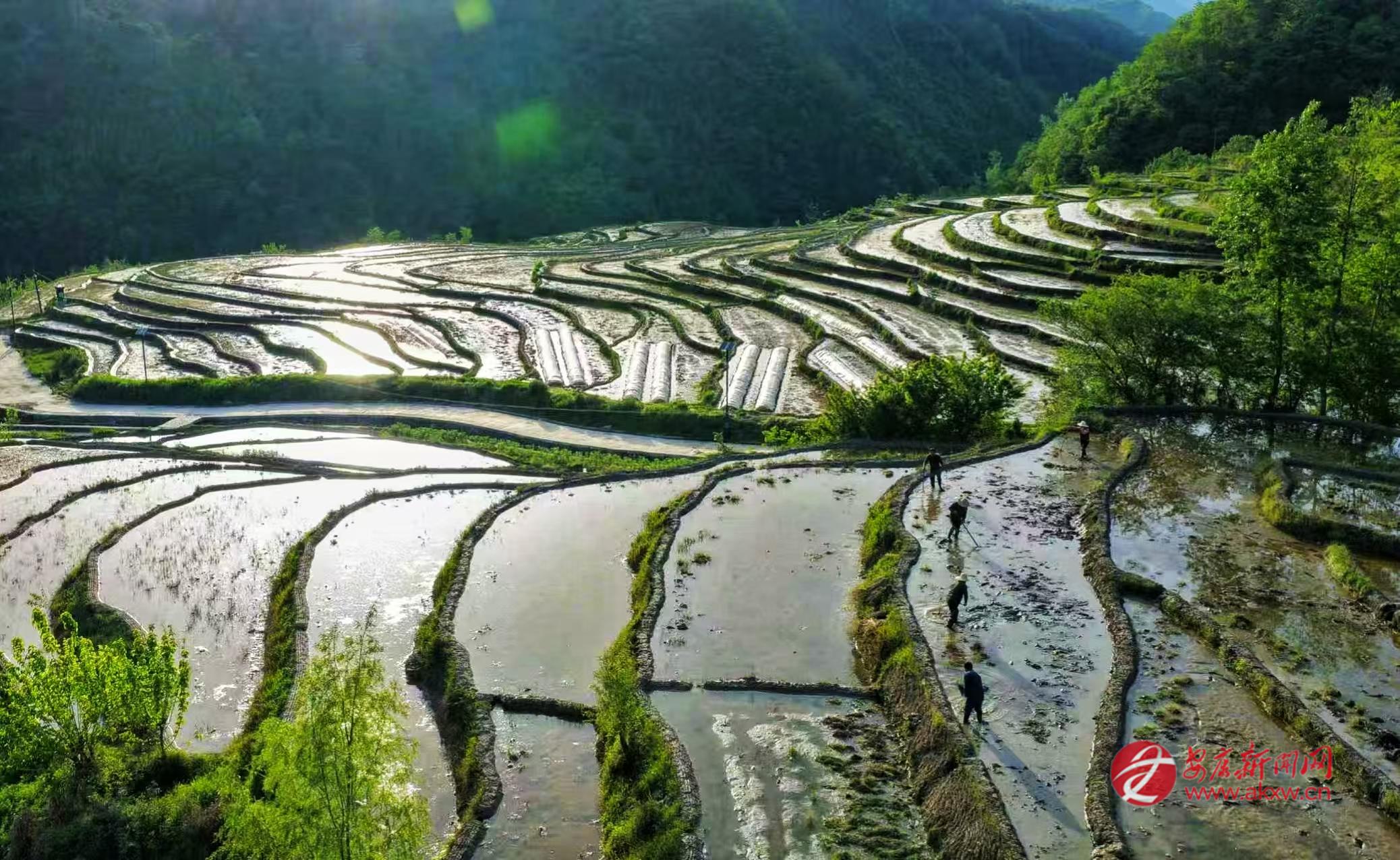 4月23日,嵐皋縣官元鎮(zhèn)古家村村民搶抓農時,對2000余畝古水田進行深翻灌溉,為下一步插秧做好準備。 邱仕君 攝