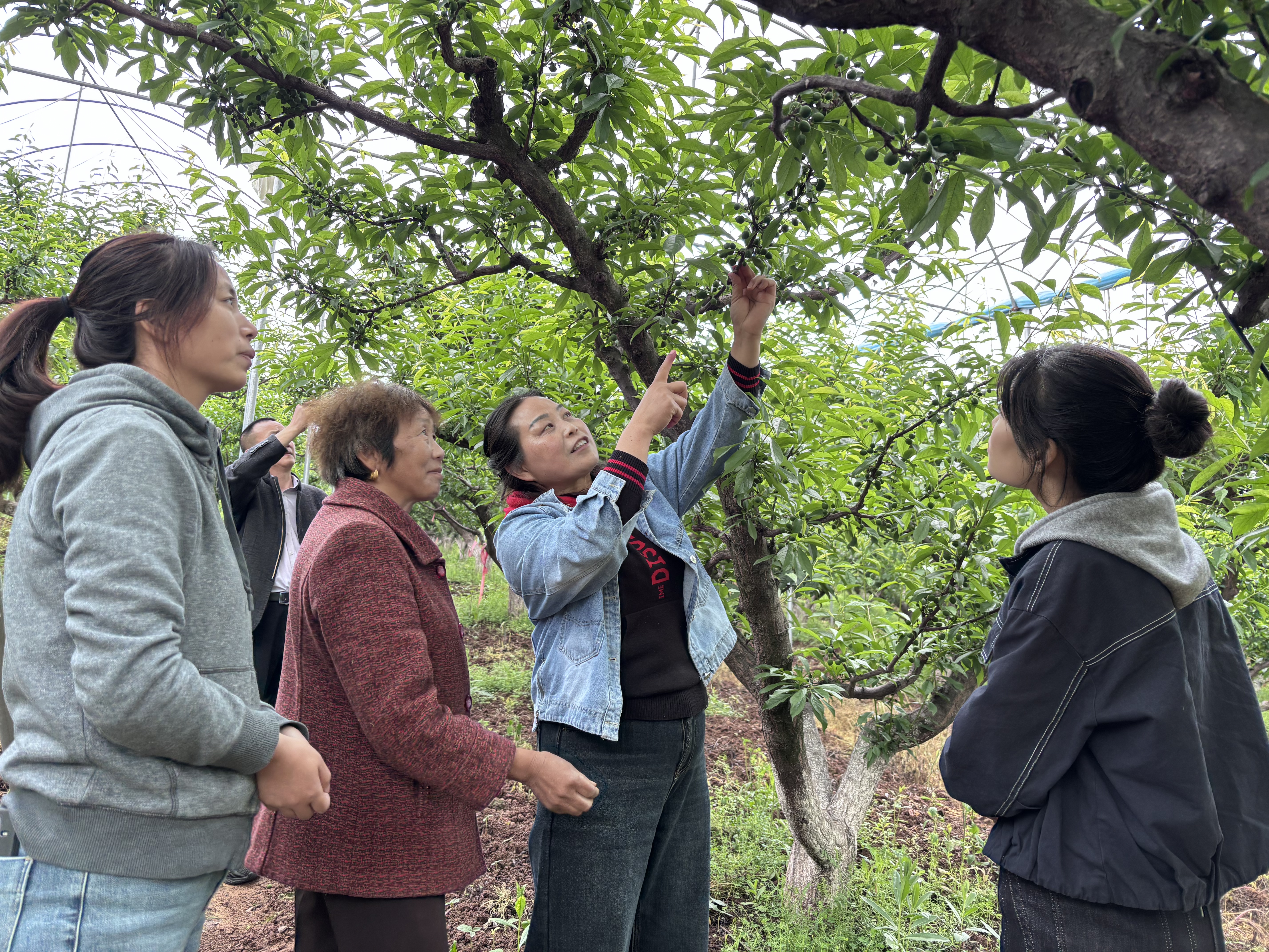 李懷群(左三)在李子園進行疏果技術(shù)指導。